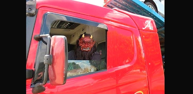 O condutor de um caminhão cegonha foi preso em flagrante na manhã de sábado (8), em Amélia Rodrigues (BA), depois de percorrer a BR-324 empurrando os outros veículos para fora da pista. O caminhoneiro, que havia saído de Camaçari, também na Bahia, com destino a São Paulo, usava uma máscara com a figura do diabo, que causou pânico entre motoristas.