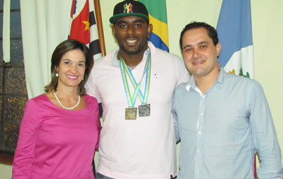FOTO CAPA: Prefeita Flávia, Thiago Paulino e Tiago Cavasini (Sec. Esportes)